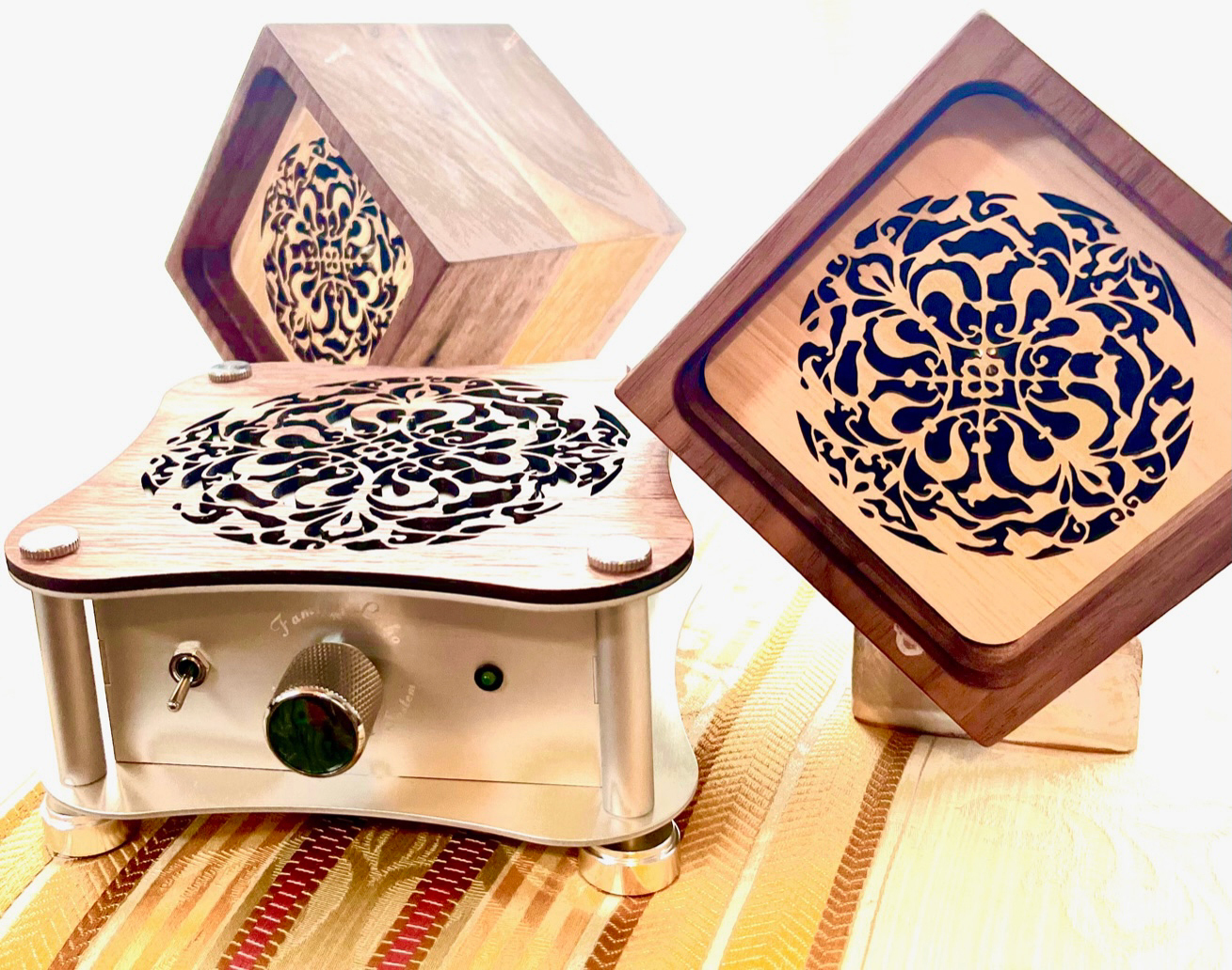 量子的なアプローチのメッセージする事によれば、すべての分子、細胞、臓器などは固有の周波数で振動体しています。身体は有機体であり、無機質な人工物とは相容れず、同じく生体組織である無垢の木の振動が生み出すエネルギーと調和的に共鳴するのは自明の事に思えます。音のエネルギーは鼓膜で「聴こえる」だけでなく、360度に広がり、スピーカーの振動が生み出すエネルギーを全身が空間を通して吸収するので、プラスチックや樹脂で出来たスピーカーからは石油製品のエネルギーでしかないのに対し、無垢の木のエネルギーは森の生命エネルギーを生じさせ有機的なエネルギーで空間を満たすことができるます。