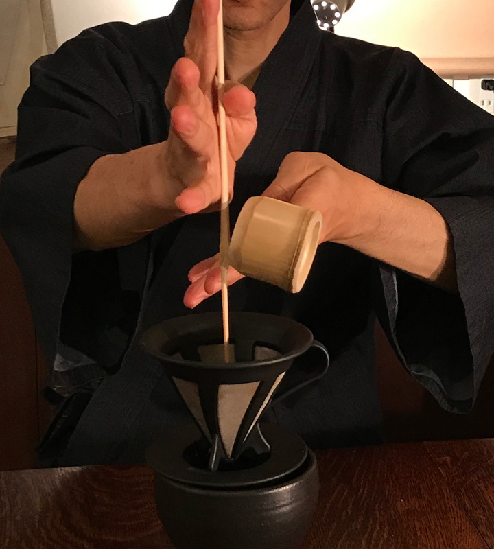 大地の恵みと火、水、空気そして心身が一緒に働いて淹れる一杯のコーヒー。心を映すお茶碗としてオリジナル制作したコスモ椀とウォーターコンダクター(水引き)で淹れる新しいコーヒー作法です。