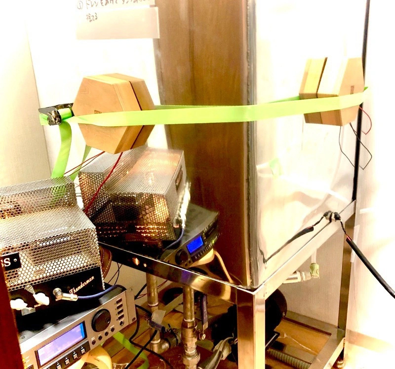 そのため、私たちは音を単に聴こえるオーディオとしてではなく、エネルギーとしての音の本質に興味を持ち、新しいサウンドデザインの開発に取り組んでいます。特殊な振動ユニットと楽器の様な構造を持つ無垢材を組み合わせたさまざまなシステムを用途に応じて製作しています。